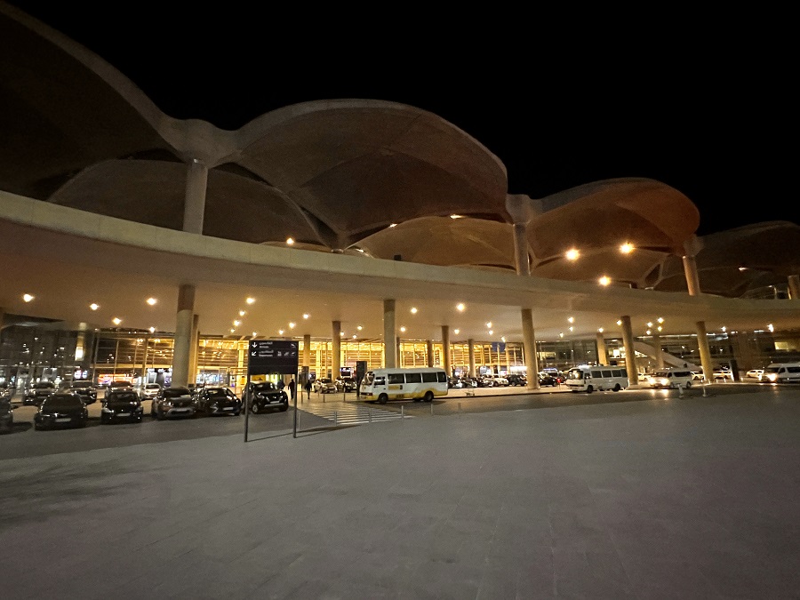 After five hours we eventually reached Amman where the sight of the city's street lights below in the dark of the night had us utterly amazed. The plane turned South, into darkness and towards Queen Alila airport. Where we landed smoothly precisely on time at 23:15 local time.