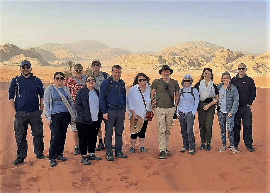 We stopped for a group photo, from left to right we had Adam, Lauren, Andrea, Angela, Darren, Kevin, Julie, me, Tiffany, Ceri, Alexandra and Stuart quite the motley crew. In the distance we could see the mountain range of an area known as Al-Warqa.