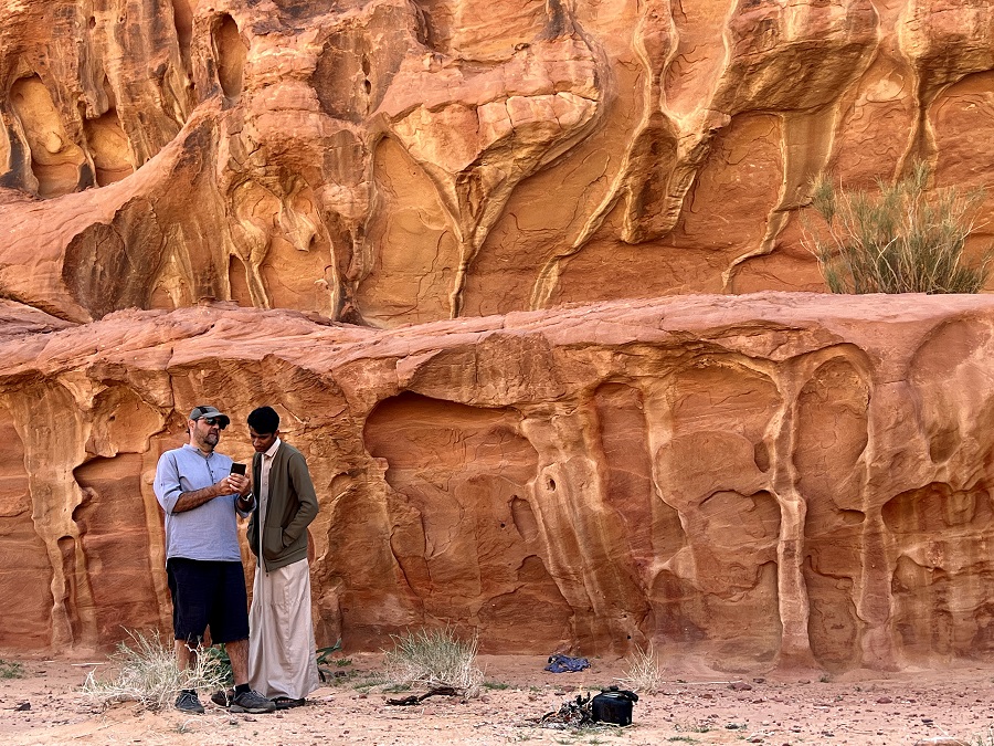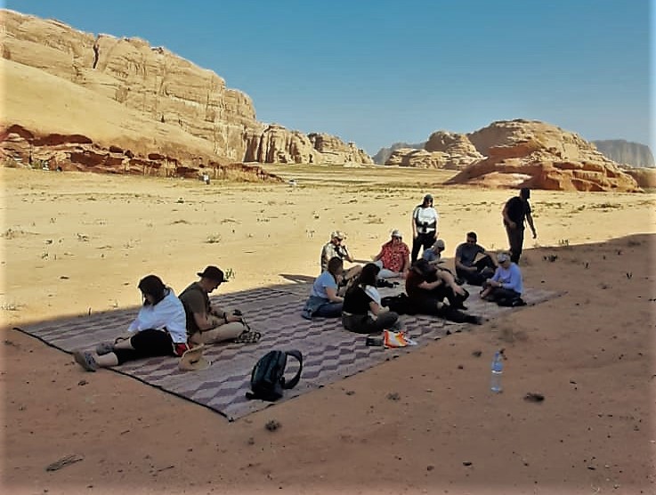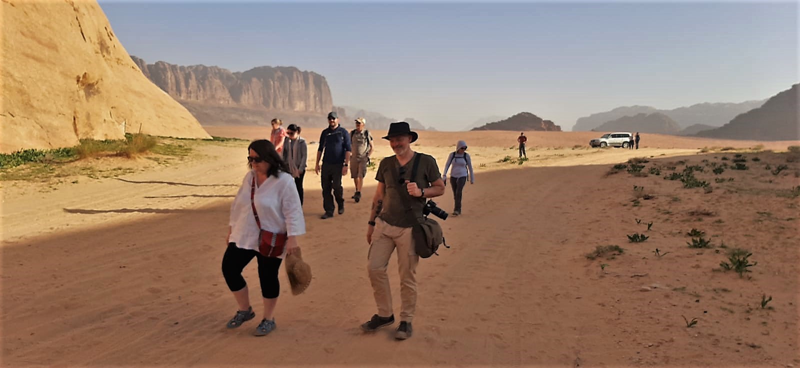 Soon everyone arrived, mostly fresh faced apart from Darren and Andrea who struggled to sleep. After we had all eaten and freshened up we gathered together back in the large tent to wait for Musa who was going to lead us on a guided hike this morning. It was an early start to avoid the heat as much as possible. "I'm not sure that following Moses across the desert is a good idea" I said to Julie. "The last group who did that were lost for forty years!"