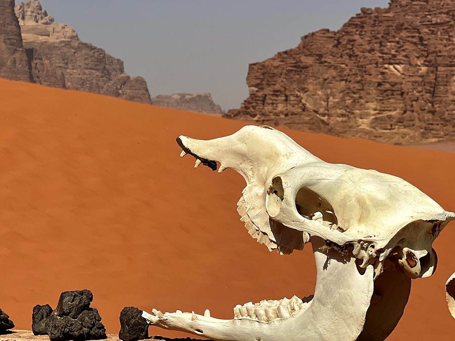 Whilst we waited for the others to come down off the sand dune I admired the skull of a camel. It was incredibly large and almost prehistoric. The distribution of the teeth was fascinating me. I even stood there wondering why evolution had made it so.
