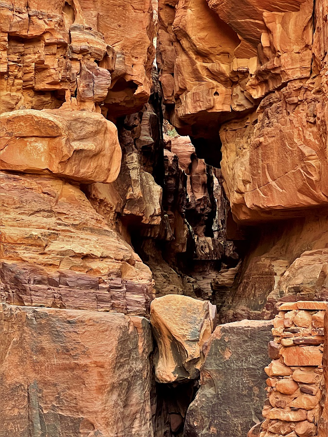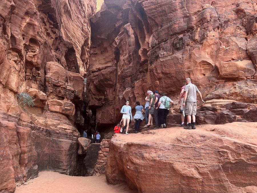 We scrambled over 100m deep into the siq where we eventually reached a dead end. The full stop at the end was the deepest of its holes. It didn't look like it was suitable for drinking.