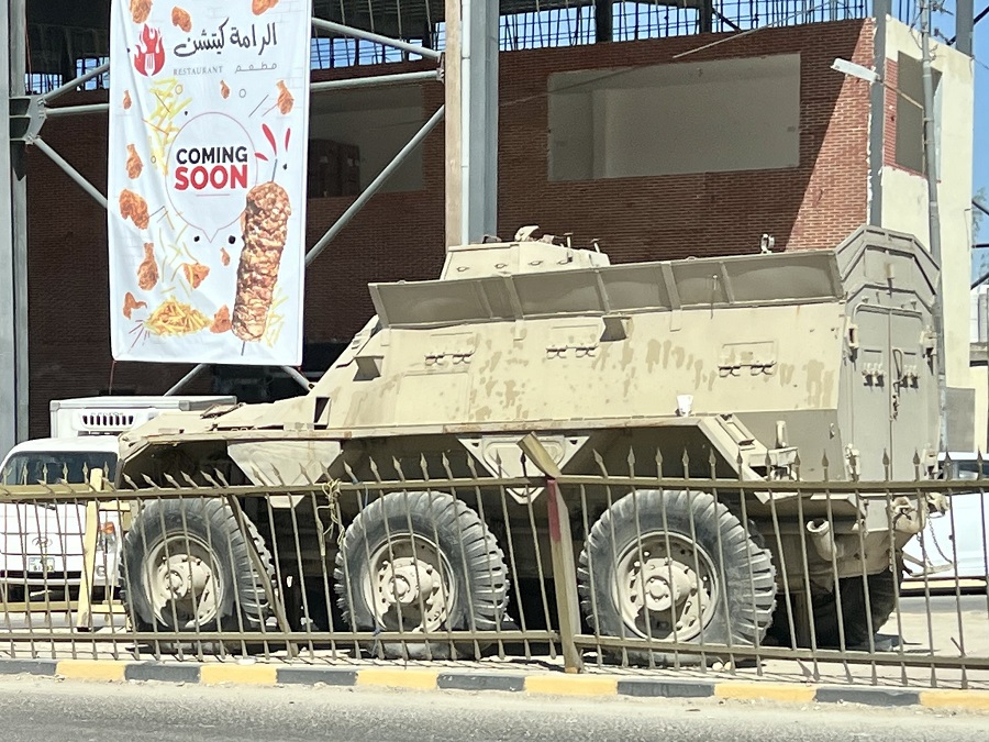 Then, another reminder of the tensions appeared as we turned onto Baptism Road, at the intersection with the Dead Sea Highway. We saw an armoured personnel vehicle, the first real military presence we had seen on our trip.