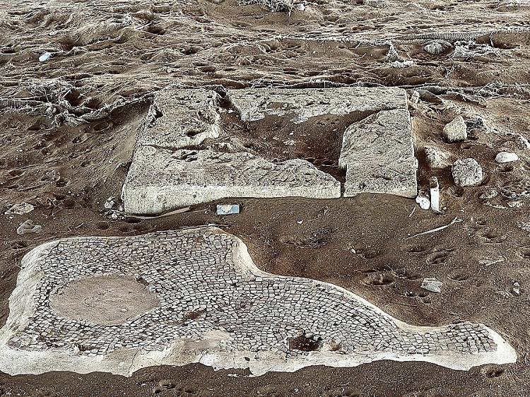 Most of the group didn't even bother to have a look. The only thing of significance was a few fragments of mosaic but by simply being there they showed there once was a church, which had steps that lead down to a baptism pool. In fact on and around this spot the remains date back to five seperate churches exist. The oldesst being 4th century. The whole site has been listed as a World Heritage site. Julie and I were the last to leave the pavillion. Fearing the wrath of the guide we quickened our pace to catch up with the rest of the group. We didn't want to "go on our own"