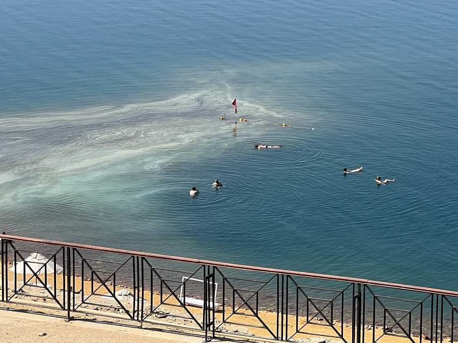 We stepped into the water. The ground fell away quite suddenly and I was out of my depth after only a few metres out but a strange calmness came over me as I floated further out on my back. I had no fear of drowning. This was a much better experience than the float we did on Thursday because it was a moment shared with Julie floating nearby, our hands touching briefly. "Has it always been Dead?" asked Julie. What a great question. I had never thought about whether during the time of Christ, or even Moses, was it as salty as this. The answer to which I did not know. We didn't spend long in the water. Perhaps five or six minutes, which was long enough.