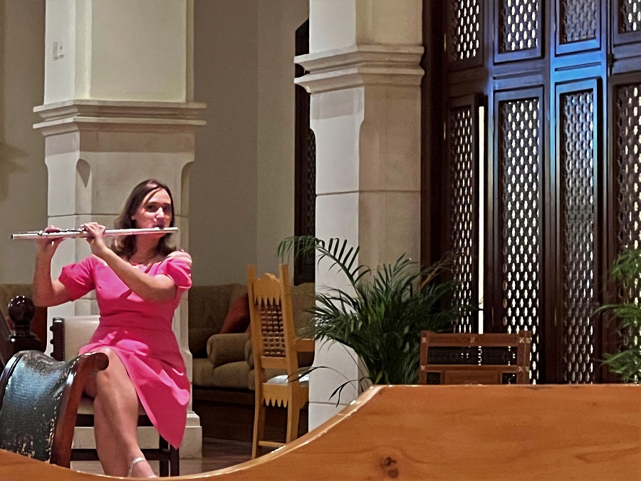 The other side of the bar there was a flutist playing popular tunes that you sort of recognised like the one from Titanic, and the Whitney Houston one but none of them were easy on the ear. At 8pm we left happy hour, a little happier than we arrived.