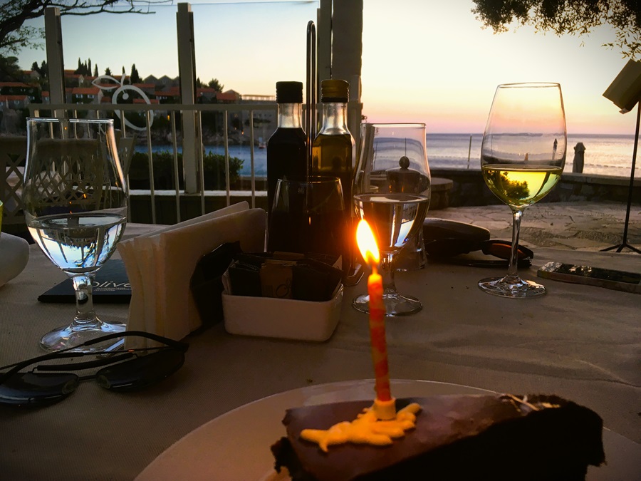For dessert we had a thoughtful surprise. We had mentioned in passing that it was Julie's birthday. After we ordered cheesecake for dessert a large wedge of chocolate fudge cake arrive, with a candle. They didn't sing Happy Birthday but at least they had put some effort into making it a memorable moment. The chocolate fudge cake was sensational. The deconstructed cheesecake paled in comparison. We paid our bill. Our bottle of wine cost €25 which surprised us. The exact same bottle was for sale in the mini-market for €5. It's understood that restaurants put a mark-up on the price to cover other costs but 400% extra was a bit much.