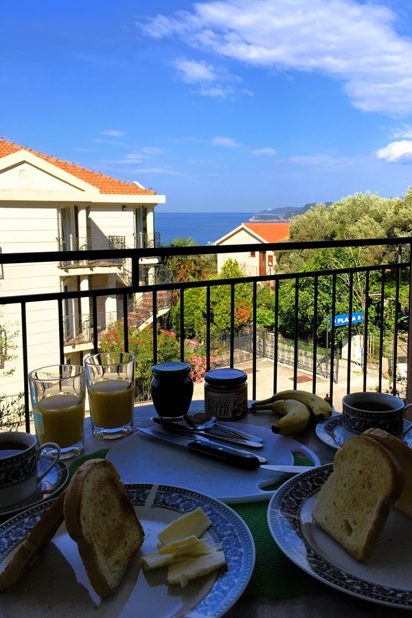 It was another lovely day in Sveti Stefan with blue skies and sunshine. Breakfast was served on the balcony. Being able to eat outside was such a novelty for us. It was becoming our favourite part of the day.