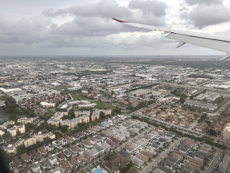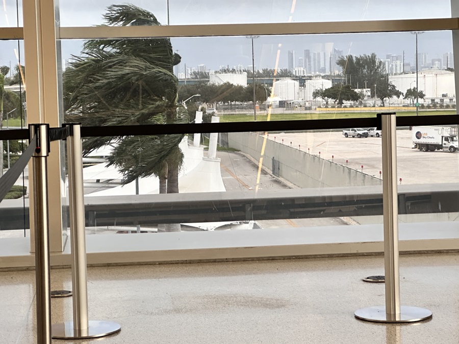 However, when we got close to landing in Miami it was a different story. The plane bounced around and shuddered violently. The hurricane was further to the North but the wind was still very strong in Miami . Julie had her eyes closed for most of the approach, wishing it was over soon. It came to an end with quite a bump, which only to be expected but we landed safely.