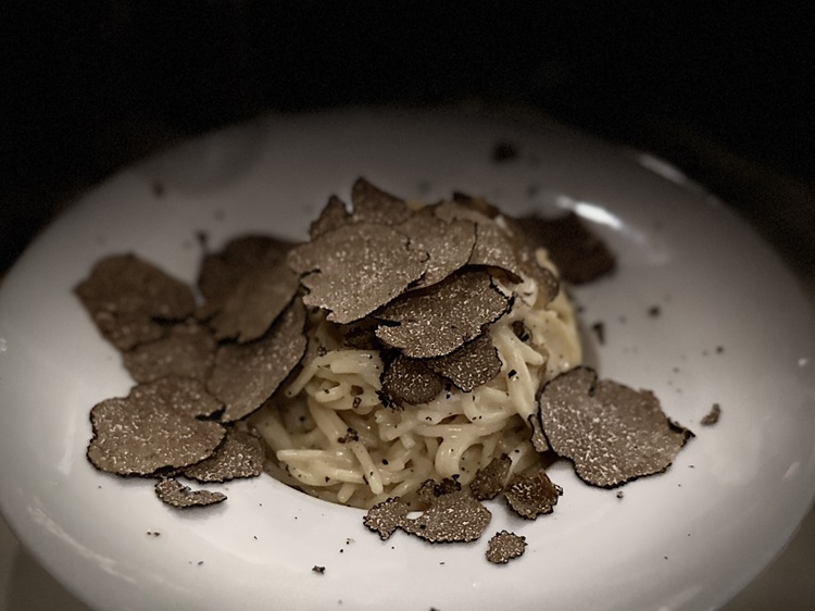 Despite the exorbitant price I couldn't stop thinking about the cacio e pepe, so I ordered it. It did come with a bit of a performance as they created the dish by bringing a large wheel of parmesan to the table, tipping in the cooked pasta and swirling it around to make the cheese sauce. Then, with the pasta transferred into a bowl, they shaved a large amount of black truffle over the dish. It looked the part but the truth was I didn't get the truffle hit. It should have been pungent, almost overpowering aroma but it just wasn't there.