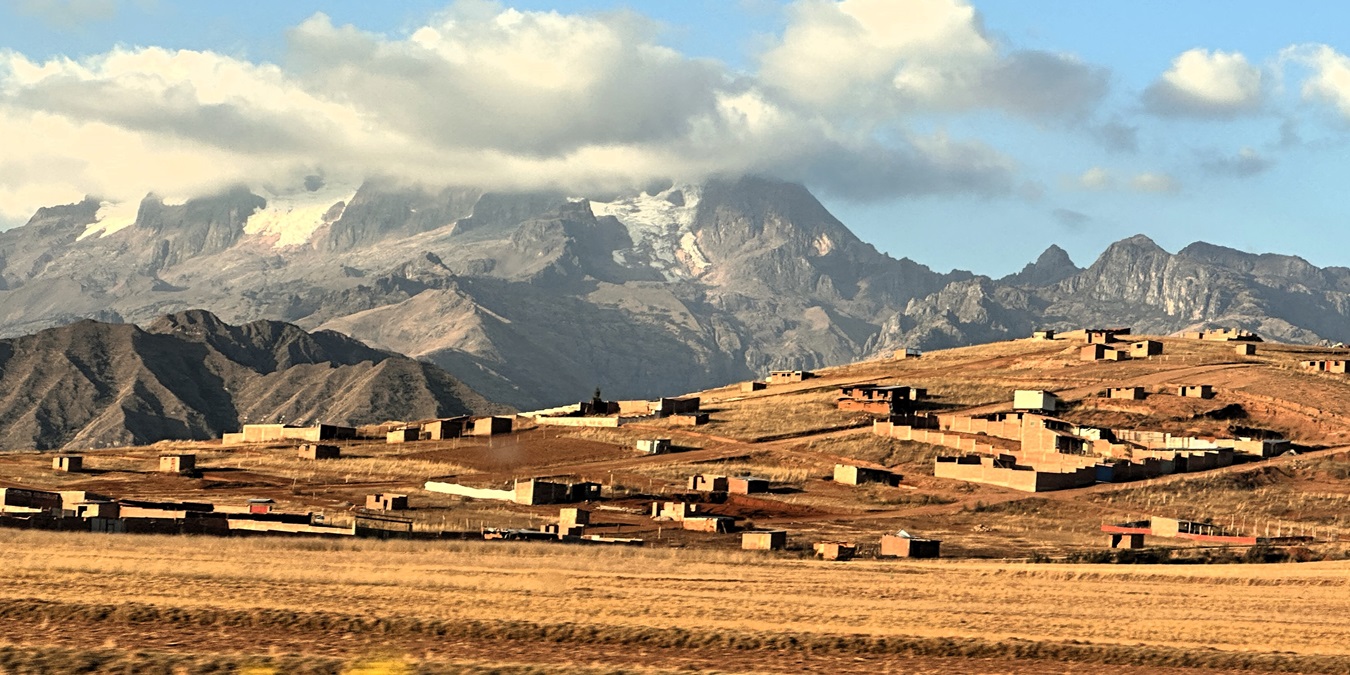The road quickly rose above Urubamba giving us some breathtaking views across the Sacred Valley. The low lying sun cast deep shadows across the undulating foothills of the mountain Chaquicocha, creating dramatic waves of rock. Rising high above them all was the snow covered peak of Chicón, standing at over 5530m above sea level, the highest peak in the Urubamba mountain range. We continued to drive across the plateau we had reached, passing a few scattered rural communities.