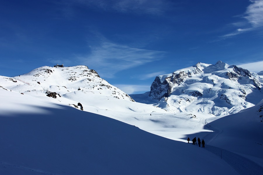 The Matterhorn may have stolen the limelight but in the other direction we overlooked the Gorner glacier and a series of mountain peaks along the Monte Rosa massif, culminating in Dufourspitze, highest peak in Switzerland.