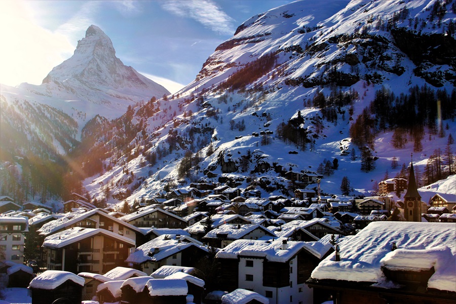 It wasn't long before I could see the snowy rooftops of the town. With it all laid before me I was surprised to see how compact this world renowned destination was.