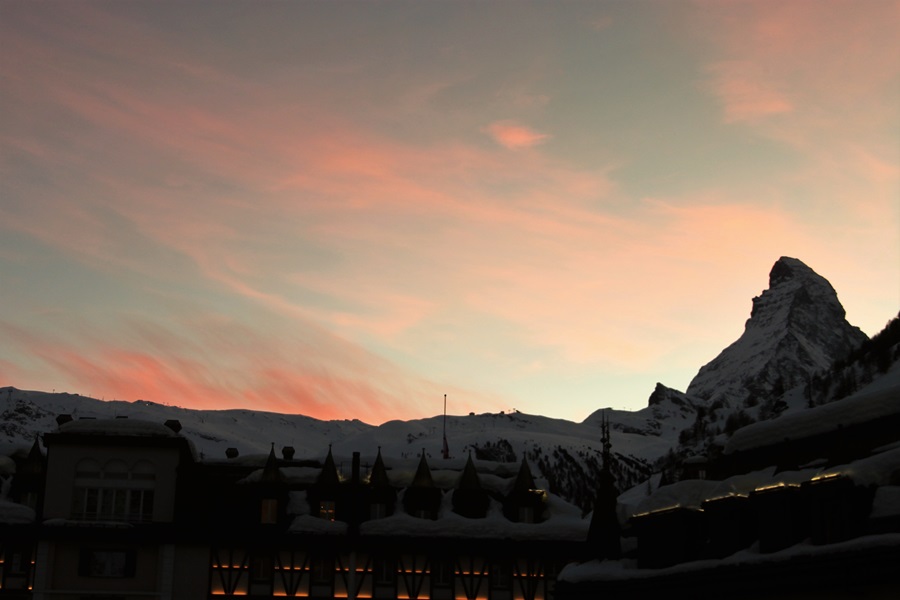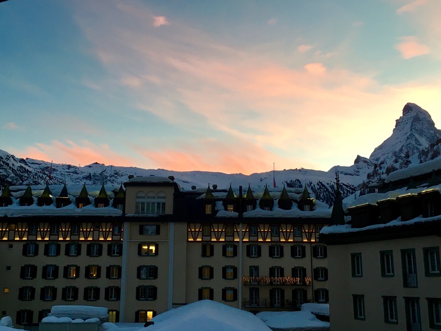 It was a lovely day with clear blue skies. The sunrise was just kissing the tip of the Matterhorn. It was such a breathtaking view, we didn't rush down for breakfast. Not before we phoned home and sang "Happy Birthday" to Ada who was 3 years old today.