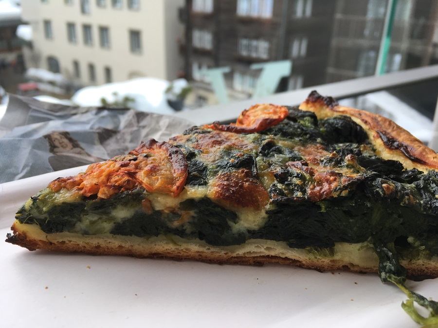 I was on the lookout for a take-out lunch and popped inside Fuch's Bakery. There was so many delicious choices but the one that caught my was called Cholera! Sharing its name with a disease was really unfortunate but it looked great and more importantly it looked meat free, so I got myself a slice. I also picked up a spinach and ricotta quiche as back up.