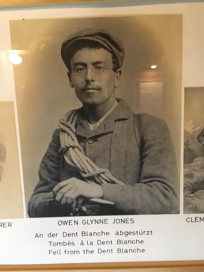 Another tragic accident that I had not even heard about before today was the ascent of Dent Blanche in 1899 where Welsh man Owen Glynne Jones fell to his death with three of his fellow climbers. Looking at his photogrph he looked strangely familiar. His family was from Barmouth, although he was born in London. He became a highly regarded pioneer of mountain climbing as a sport. He even wrote a book "Rock Climbing in the English Lake District".