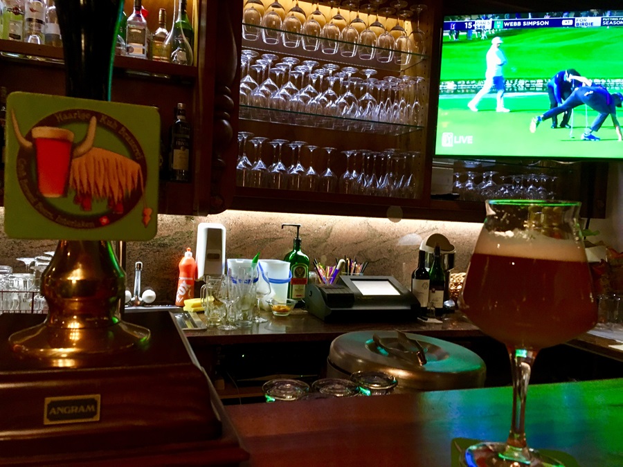 We ended up inside a shopping centre, shopping for some essetials in a Co-Op supermarket, when we came across a bar called Grizzly's. It was tiny inside and very busy. It had such a lively vibe. Two seats at the bar became available, so we perched on our stools and had a few drink whilst watching golf on the TV. I really enjoyed my beer. It was from a Swiss company, Haarige Kuh Brauerei, the Hairy Cow Brewery, from Interlakken, which had a Highland Cow as it's mascot. A little hungry, we thought about grabbing a snack at Grizzly's, but all they had was a small griddle pan at the bar, so we moved on. Not wanting to go too far we decided to give the restaurant at Hotel Pollux a try.