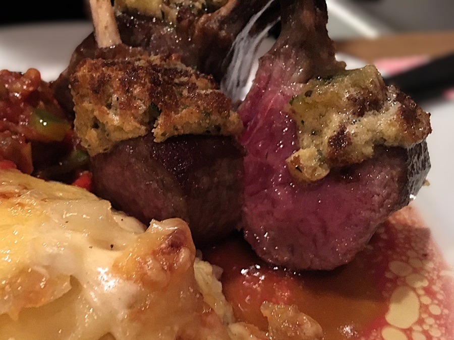 The smell of melting Alpine cheese filled out noses as soon as we walked in. I will always think of Zermatt whenever I catch a whiff of this distinctive cheesey smell. We checked out the menu, and there was one cheesy dish I hadn't eaten during this trip, and that was Raclette, a specific unpasturised cheese melted over potatoes and pickles, like gherkins and silverskin onions. Julie ordered the lamb, which came accompanied by a very cheesy potato side. She declared it her tasiest meal of the trip. For my main I didn't have much to choose from and ended up with a plate of griddled veg with plenty more melted cheese. It wasn't a big portion so I still had room for dessert. I decided on a twist on a tiramisu, with gingerbread and apricots. It was so good!