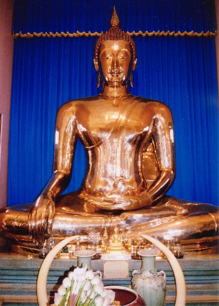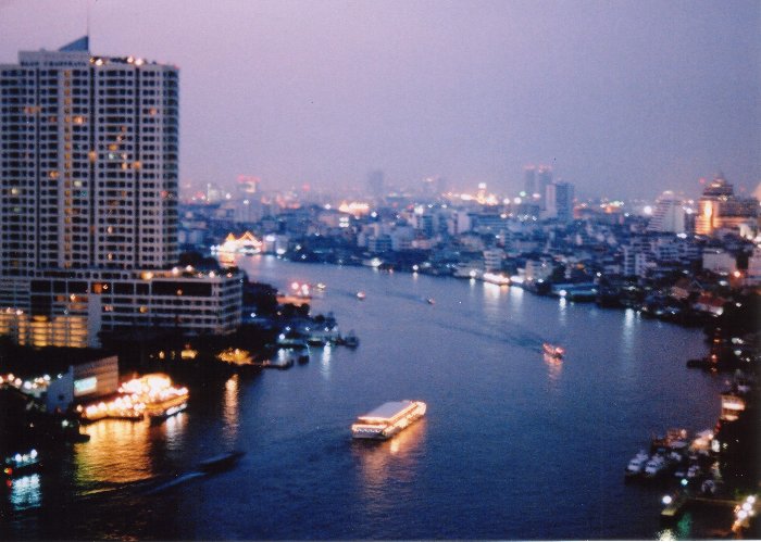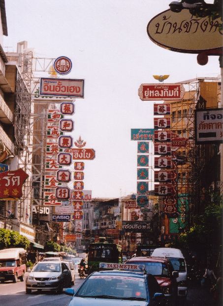 Monday 22nd November 2004 We didn't wake up until 10:15am this morning. Finally, a good eight hours sleep! Hooray! As I shuffled the zombie walk to the toilet I noticed a card had been slipped under our door. The hotel must have tried to deliver our laundry but failed to wake us. I phoned them up and almost immediately they were knocking at our door. The bill for 6 items was quite expensive but it would have been even more expensive had the lady who brought up the clothing not been so honest. In my hazy unfocused daze I had given her a 1000 Baht tip! I was so grateful that she said "You tip too much" and handed the note back! Dressed only in a towel wrapped around my waist I was also very thankful that she didn't think I was suggestively paying her for some "extra washing". I eventually gave her the correct tip with not so many zeros attached! We had a very relaxing breakfast in our room before eventually leaving at noon for Chinatown. We weren't in any rush whatsoever and had not planned an itinerary for today. It goes against my nature to be as unfocused because I would end up wandering aimlessly, getting nowhere, seeing nothing, and just plain wasting my time, but for a change I felt fine about it. Had Julie been crushing diazepam over my white omelette? We caught the Chao Praya 'Tourist' Express boat this time as opposed to the usual boats. It was spacious, almost empty, and conspicuously lacking in Thai people. The price was double that of the usual express boat but at 15 Baht it was still cheap. |