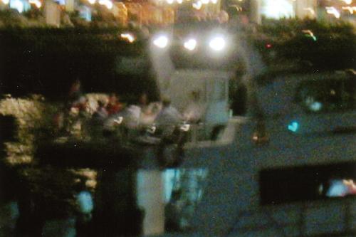 We were sat outside on the terrace and enjoyed the pleasant river view, especially when a huge (and I mean enormous) speedboat-style yacht cruised by, escorted by an entire navy of police boats. It looked like it must have been the King of Thailand entertaining the Crown Prince of Norway to a slightly superior dinner cruise along the Chao Praya river. I wonder if it really was? |